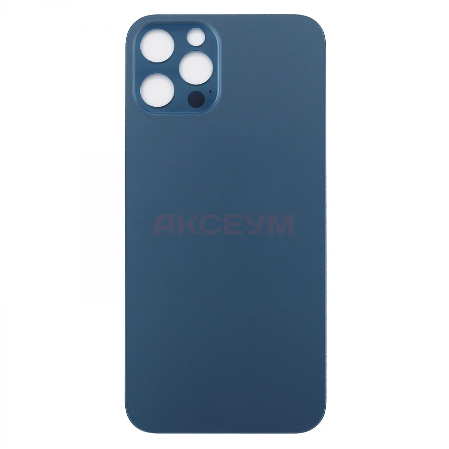 Задняя крышка для iPhone 12 Pro (стекло/узкий вырез под камеру/логотип) синяя - Премиум