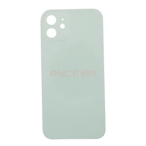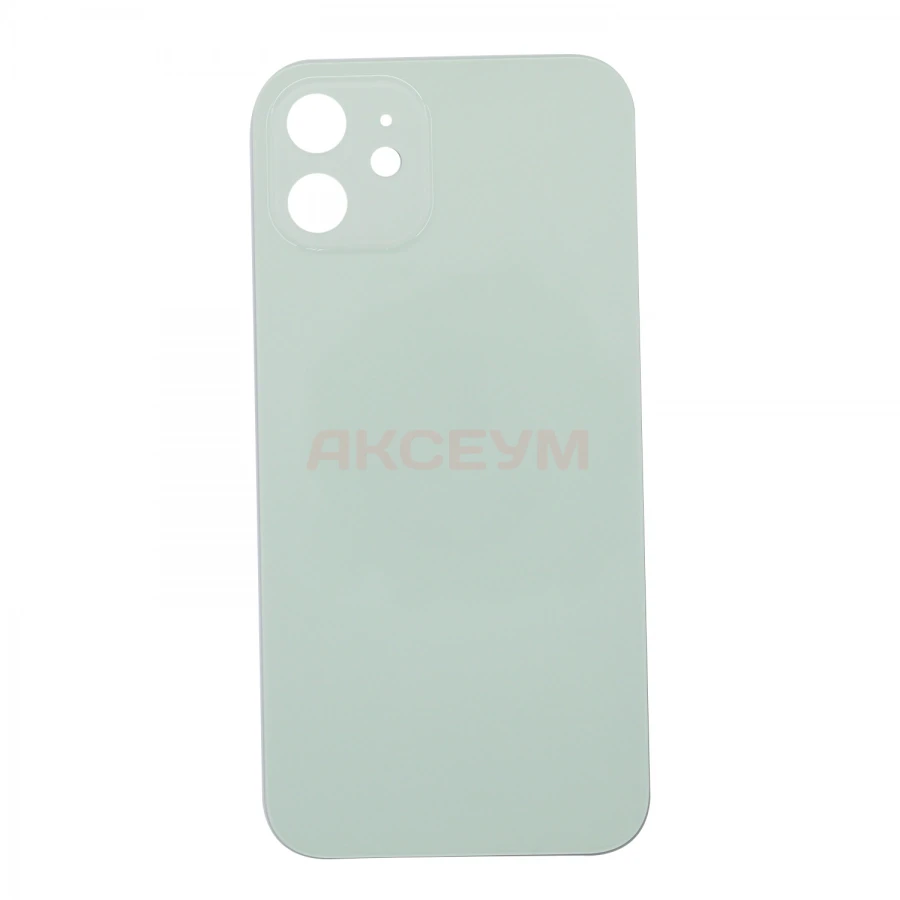 Задняя крышка для iPhone 12 (стекло/узкий вырез под камеру/логотип) зеленая - Премиум